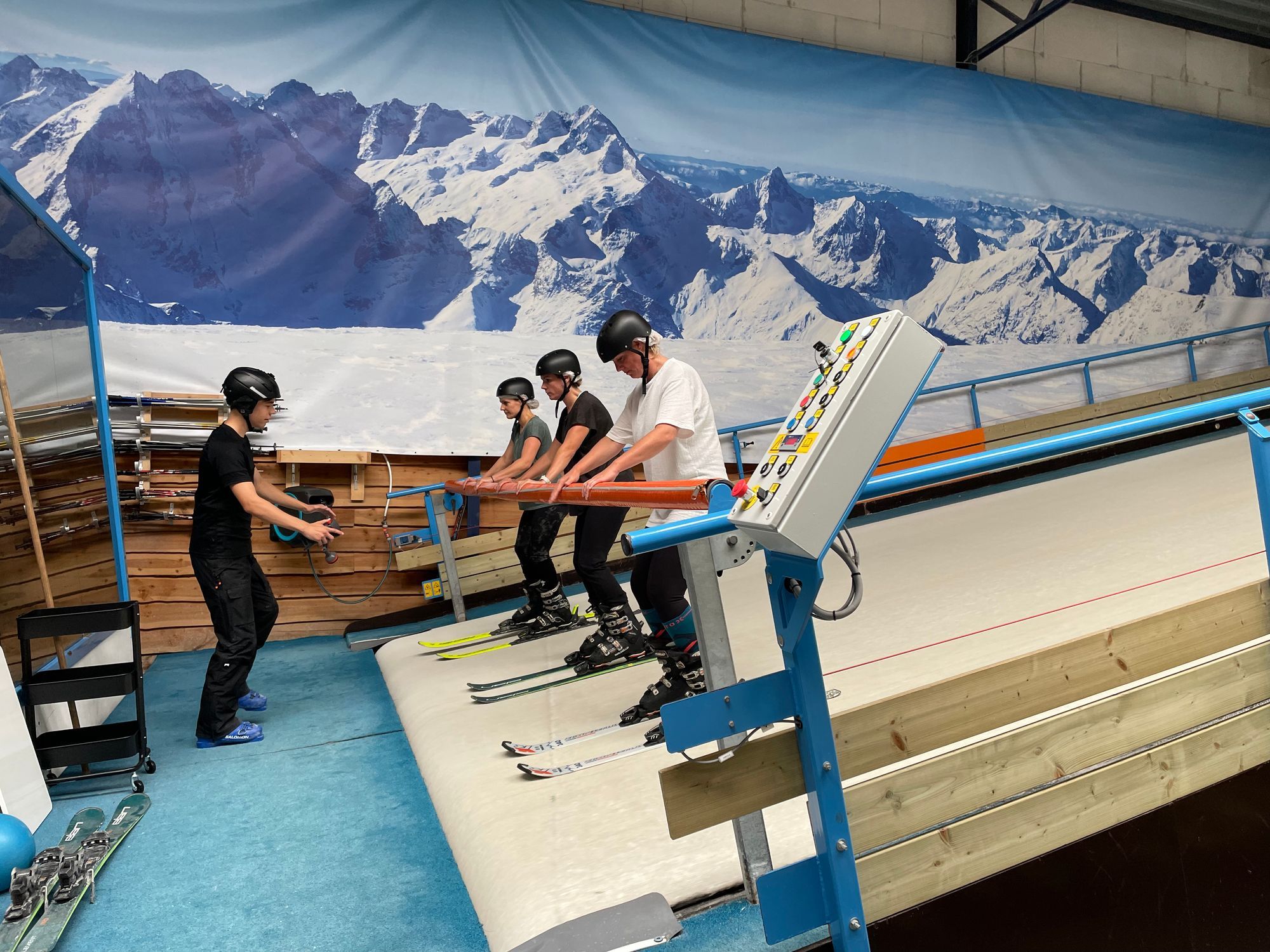 De rolbaan geeft een duidelijke basis voor beginners en maakt gevorderden beter. Je ziet jezelf in de spiegelwand en krijgt directe feedback van de instructeur naast je. Voor beginners geeft dit veel houvast. Als je vóór je wintersport op de rolbaan hebt gestaan, stap je met meer vertrouwen de bergen in. Voor gevorderden is de rolbaan een plek om techniek te perfectioneren.