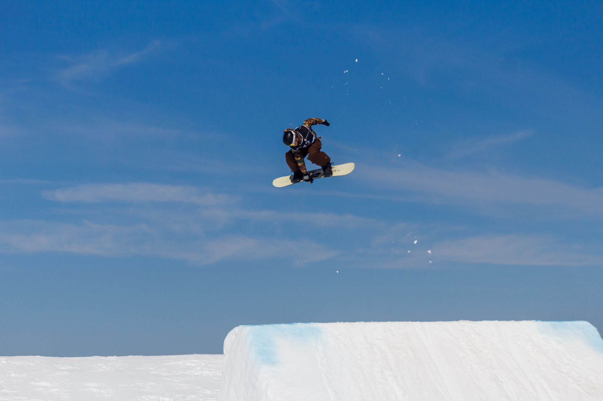 Nadat de zon gisteren even weg was geweest, was hij vandaag weer terug. Het heeft afgelopen nacht hard gevroren en de piste was erg hard. In de loop van de ochtend werd de zon steeds sterker en werd het steeds warmer. De sneeuw werd daardoor snel zacht. Gelukkig had dit niet veel effect voor de riders en konden ze hun beste tricks laten zien aan de jury.